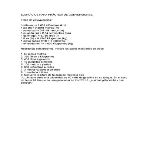 Factores De Conversion